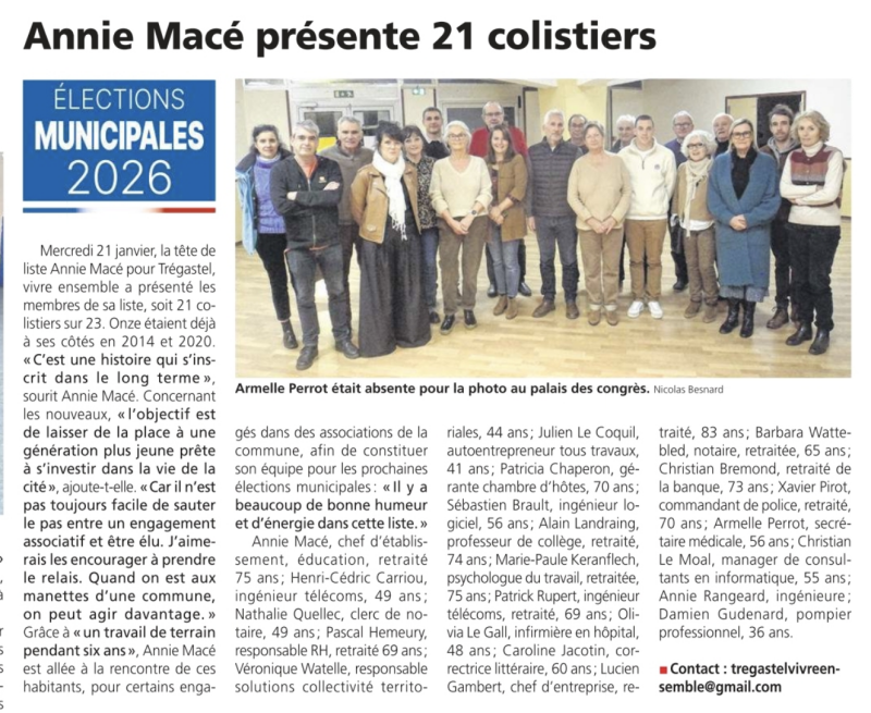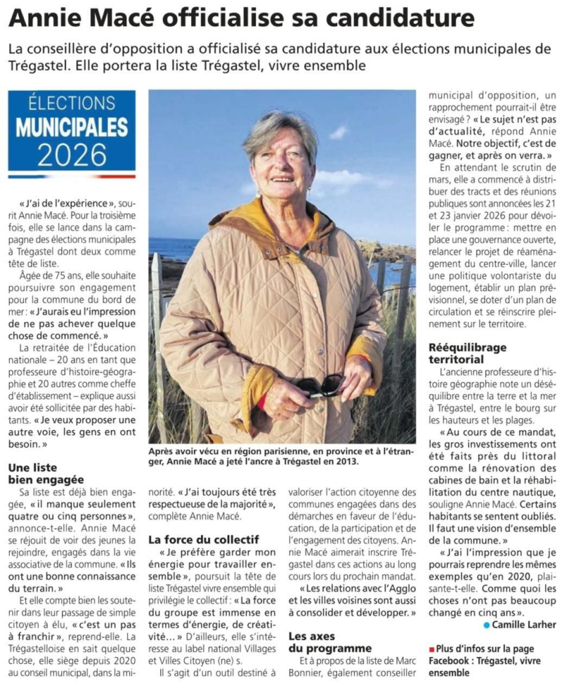 Le Trégor 18/12/2025: "Côtes-d'Armor. Municipales 2026 : Annie Macé officialise sa candidature à Trégastel"